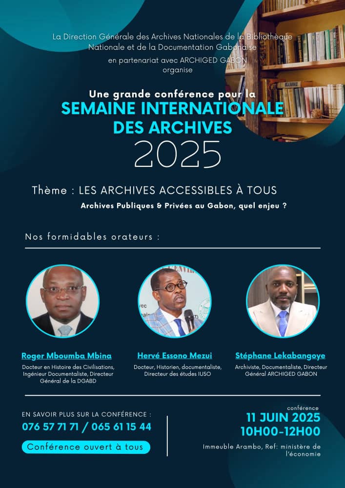 Cette conférence débat qui se tient à l’IUSSO de STFO en lieu et place de l’immeuble Arambo comme initialement annoncé, a pour thème: les archives accessibles à tous. Une problématique qui tâtonne depuis des décennies au Gabon malgré les multiples initiatives entreprises par le pouvoir déchu. L’absence d’archives originales du Gabon en rapport avec 1a signature du traité de Bata de 1974 concernant le différend frontalier des îles Mbanié-Cocotiers et Conga avec le pays sœur de la Guinée équatoriale ne nous démentira pas.